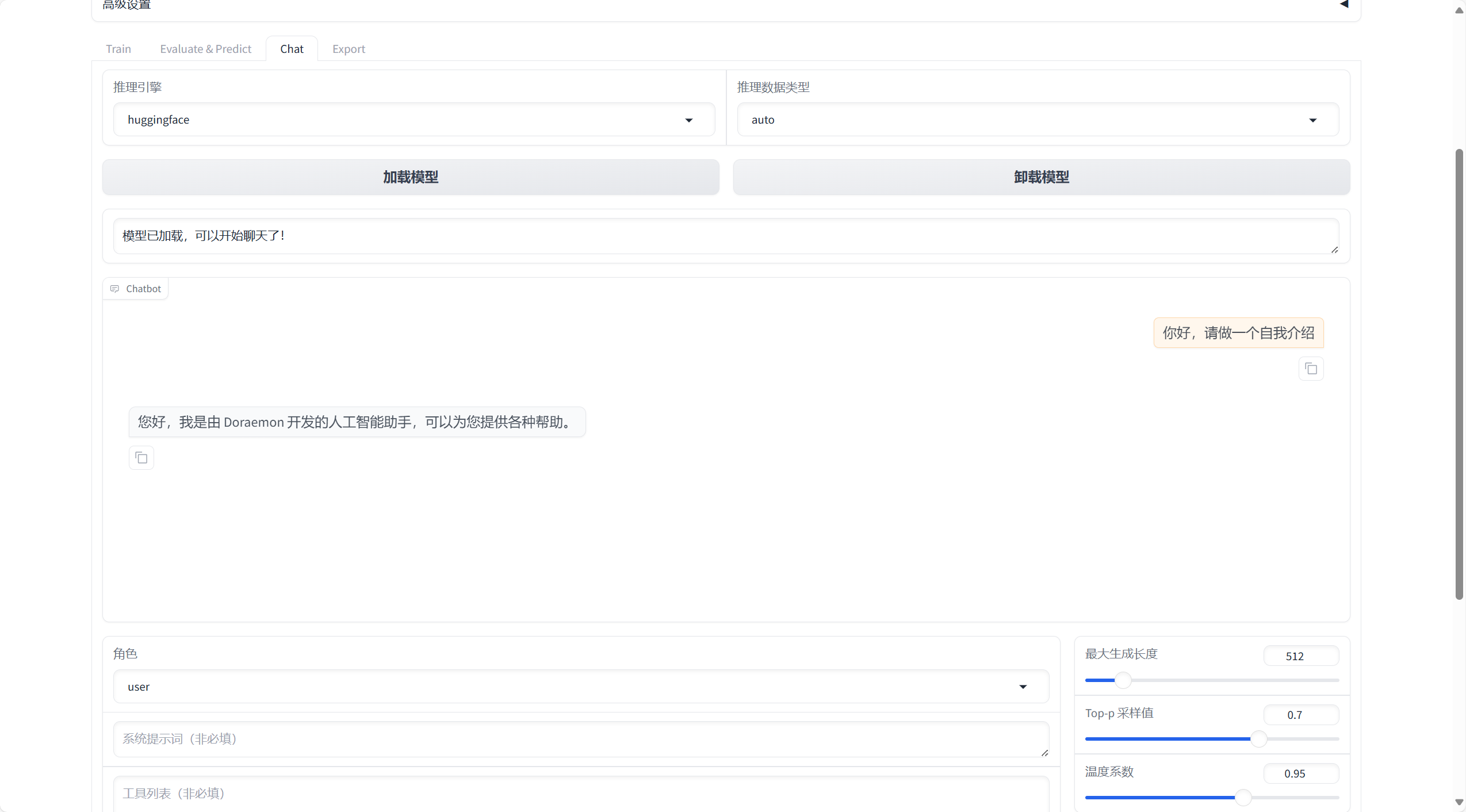 如果你成功,恭喜你!现在你可以与自己的大模型进行交互啦