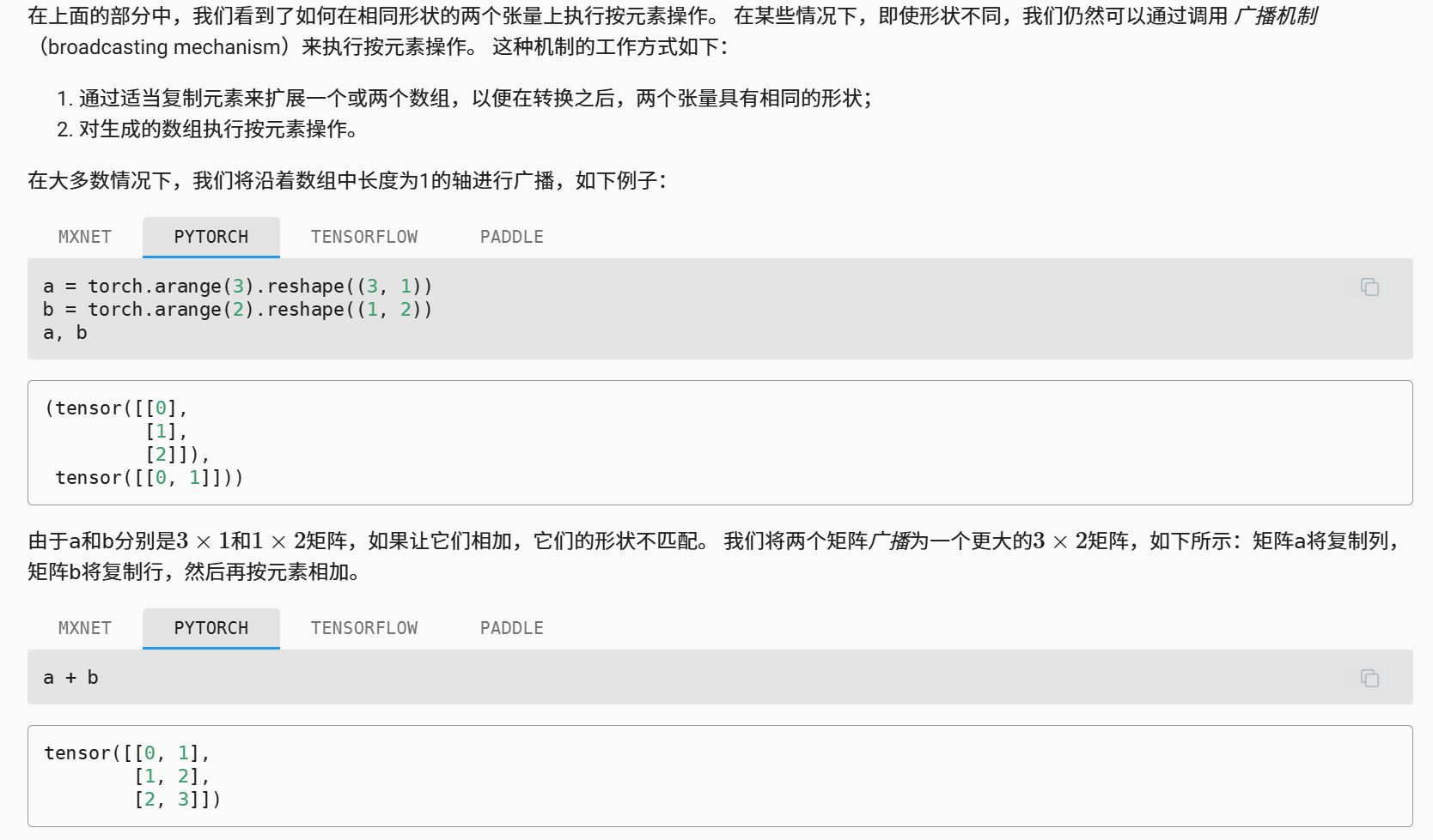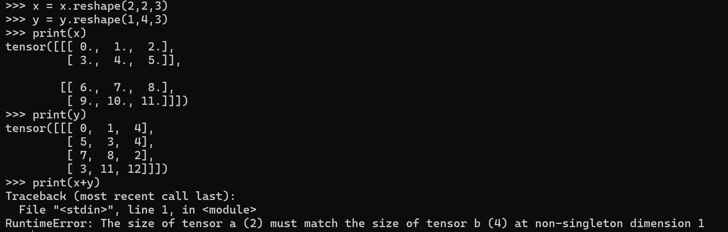 在 PyTorch 中,张量之间的算术运算要求它们的形状是相同的,或者可以通过广播机制使它们形状对齐